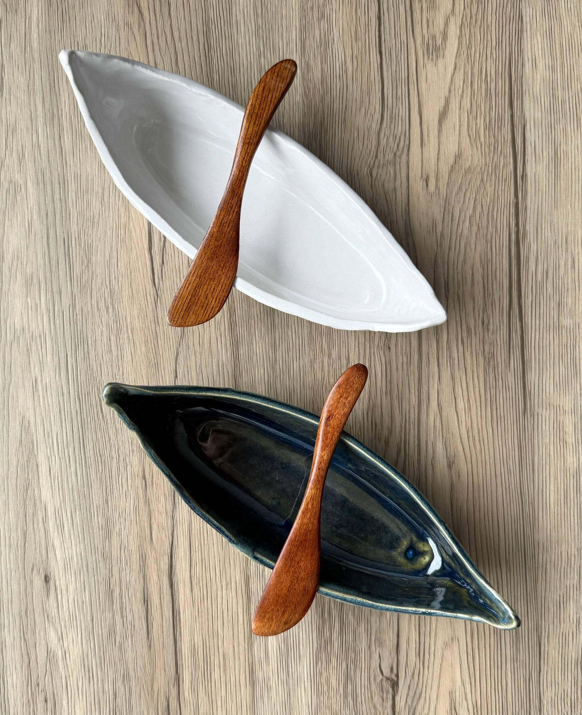 Serving dish hand-built from stoneware. Wooden knife is included!